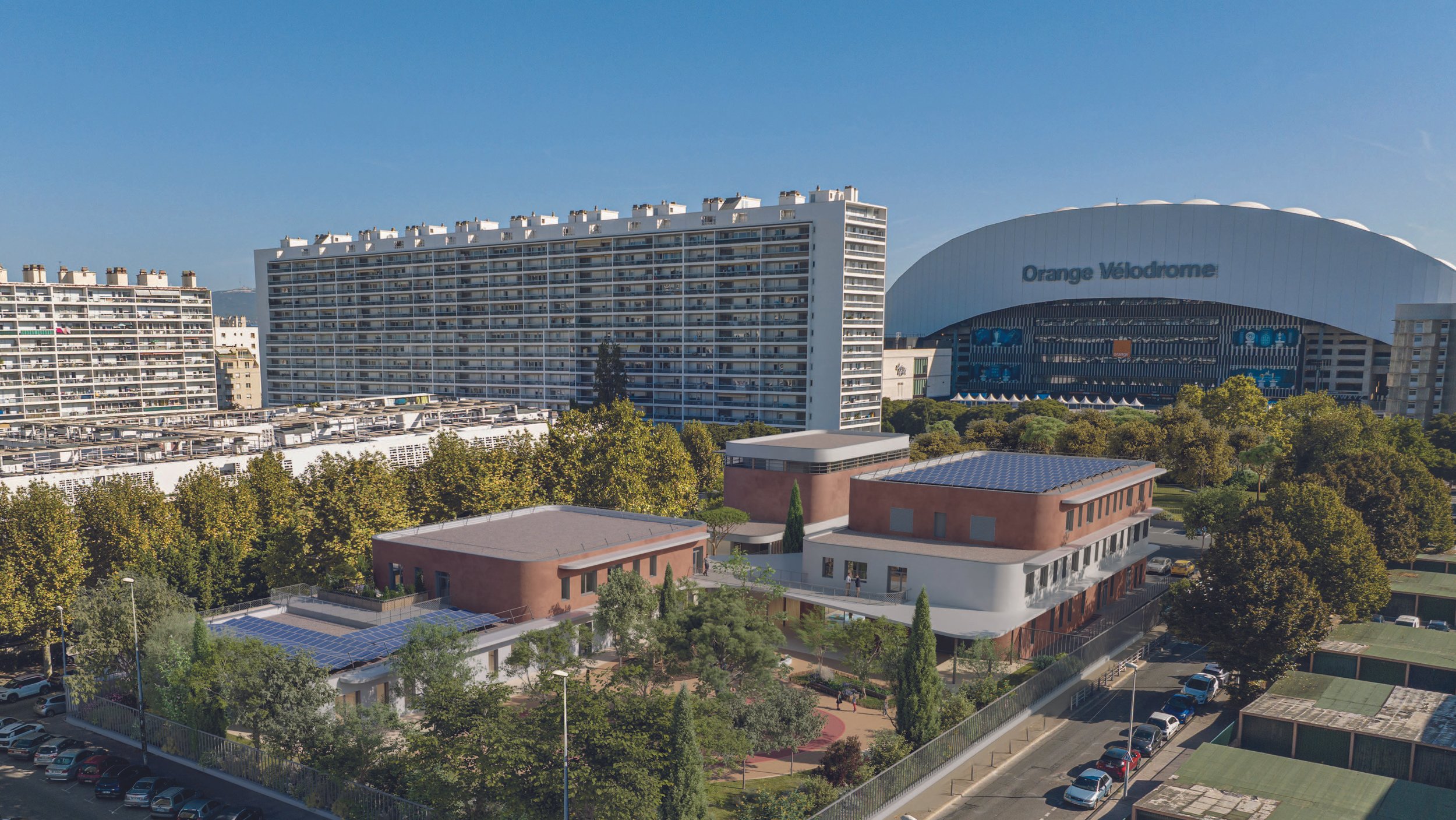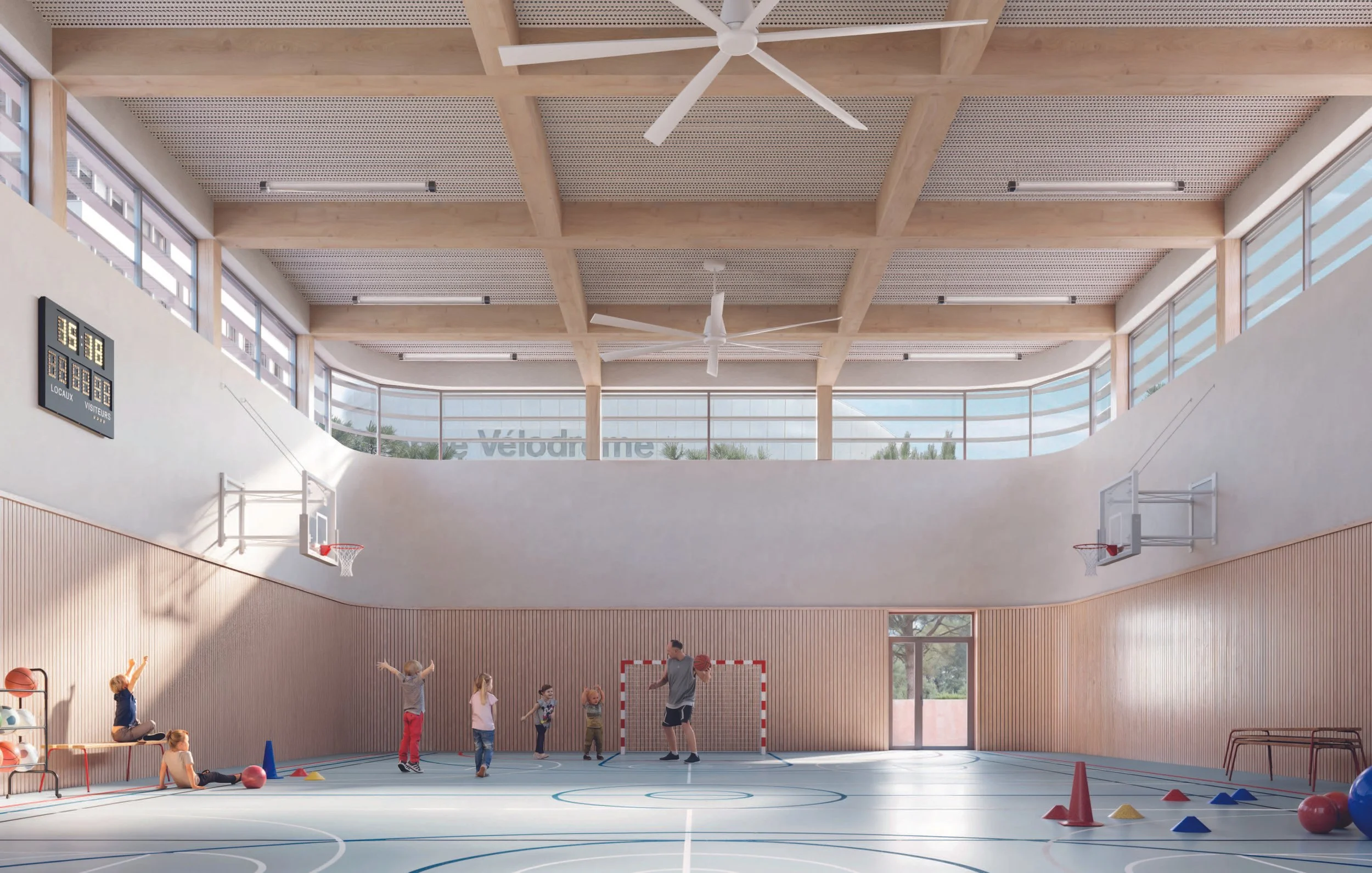 - Un bâtiment accueillant le gymnase, la salle polyvalente et l’espace flexible, accessible en dehors des temps scolaire pour les associations du quartier