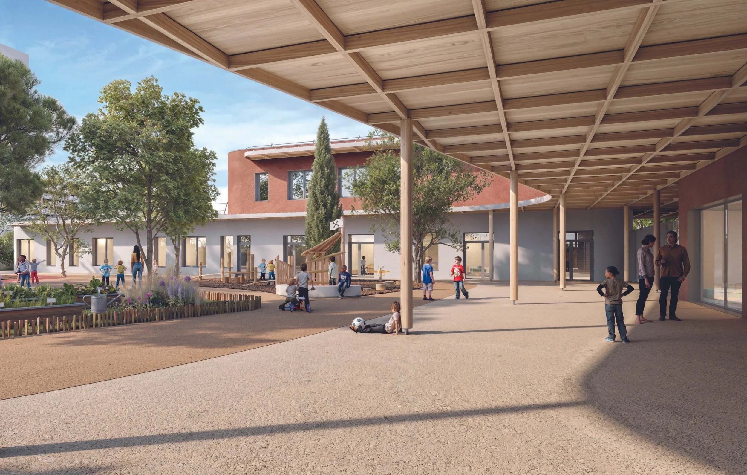 - Des cours de récréation végétalisées, ombragées et bien distinctes selon les niveaux scolaires